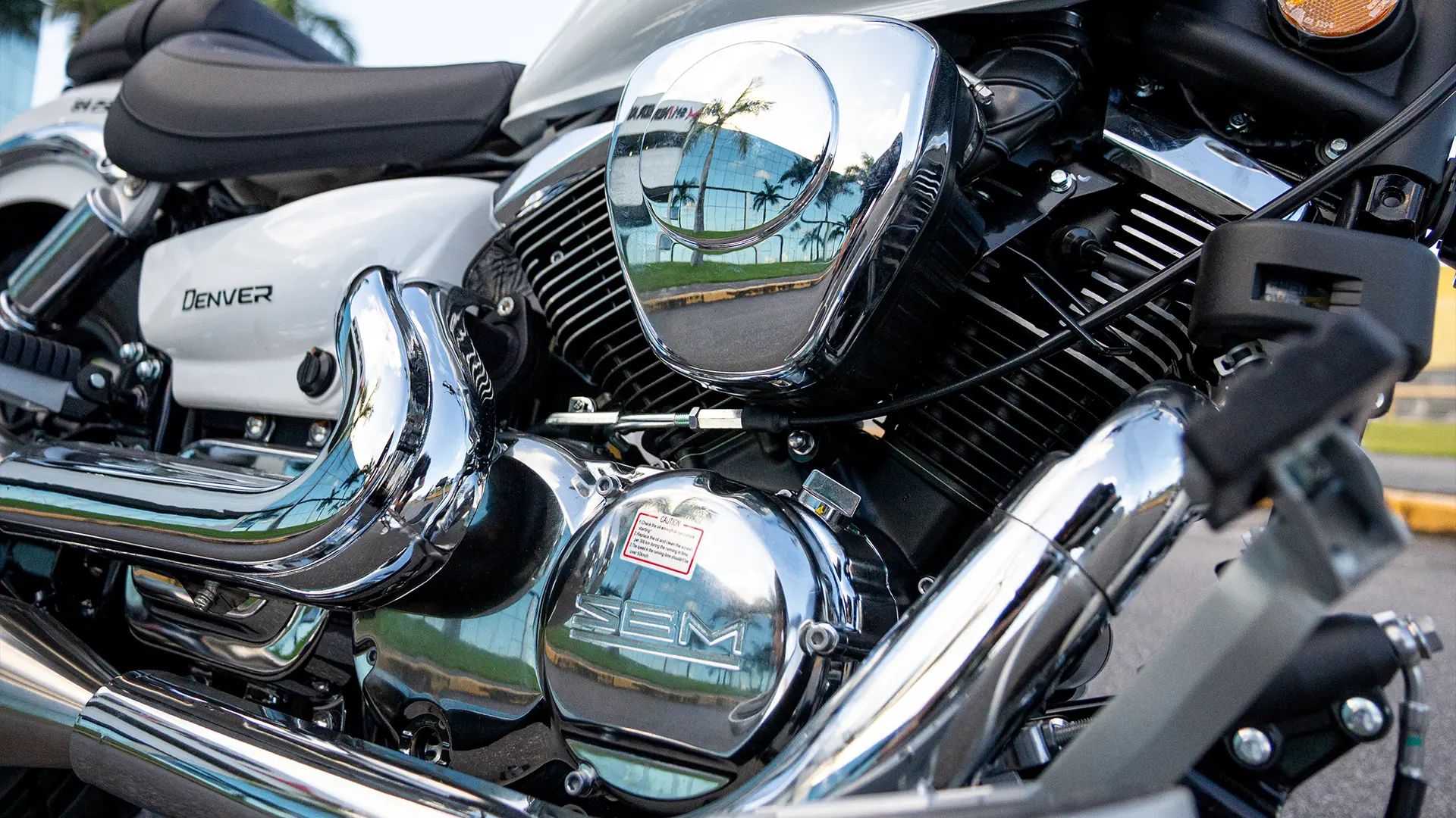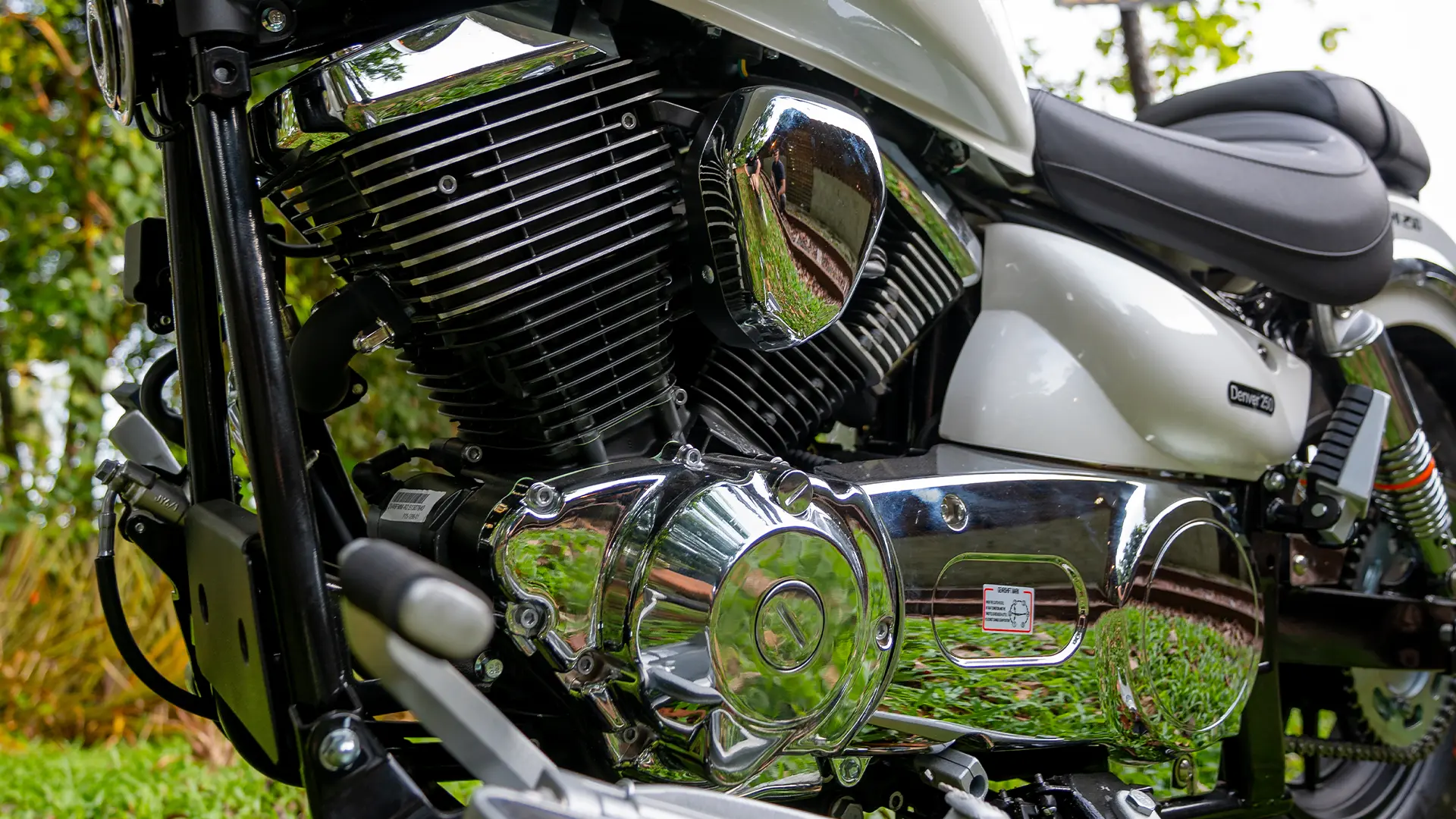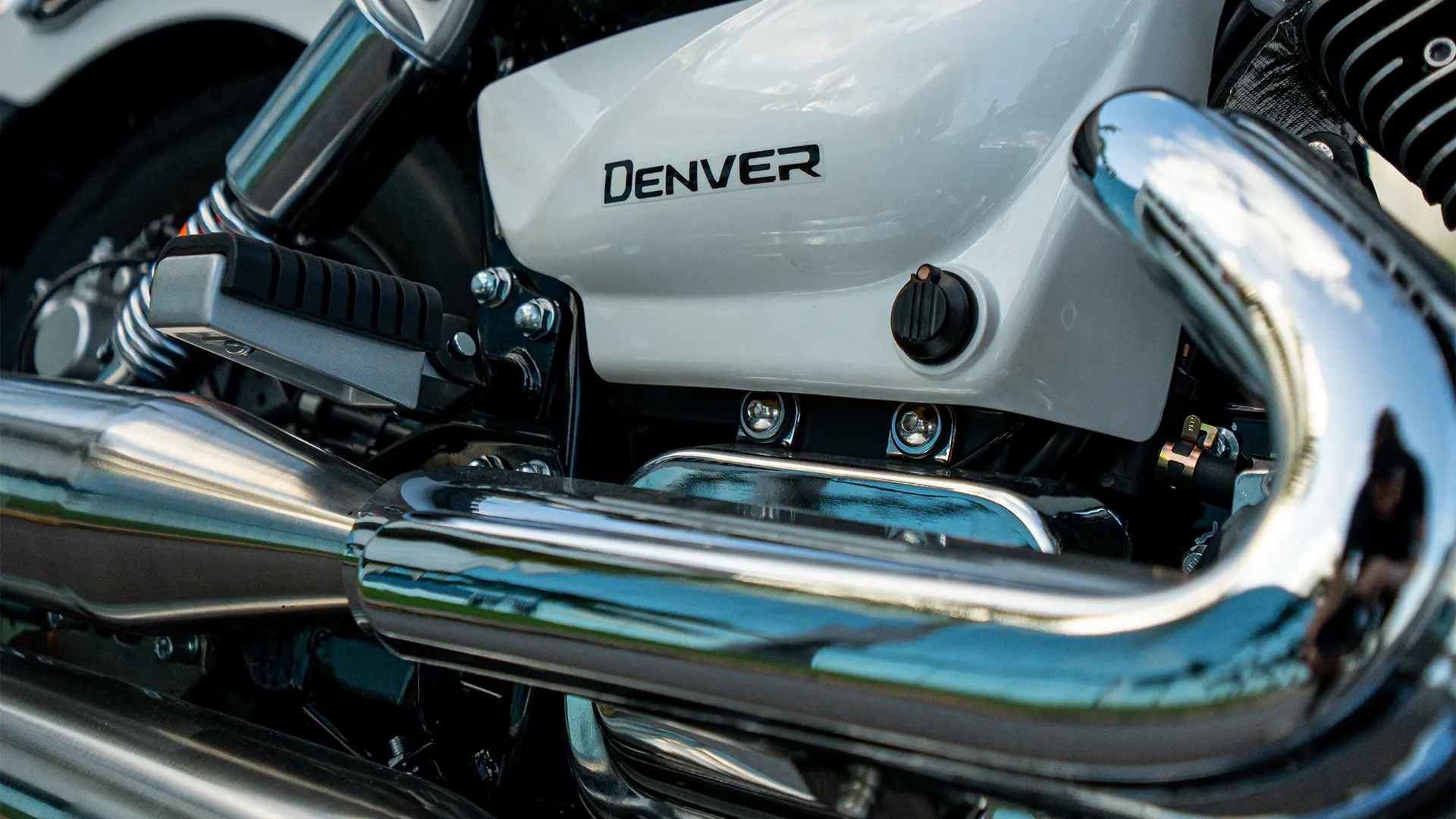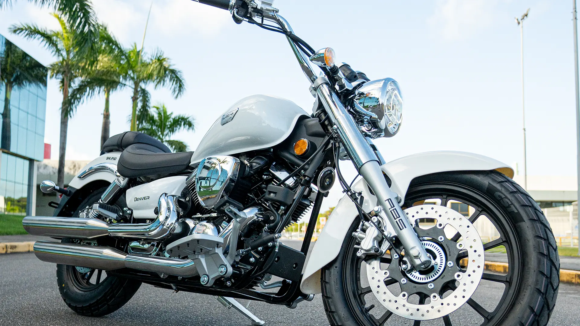 Conheça a Denver: Para quem valoriza cada quilometro da viagem. A Denver 250 une conforto e estilo em um modelo clássico e acabamentos cromado. O modelo possui motor bicilíndrico em V, freios à disco com sistema ABS de dois canais e sistema de injeção eletrônica.
