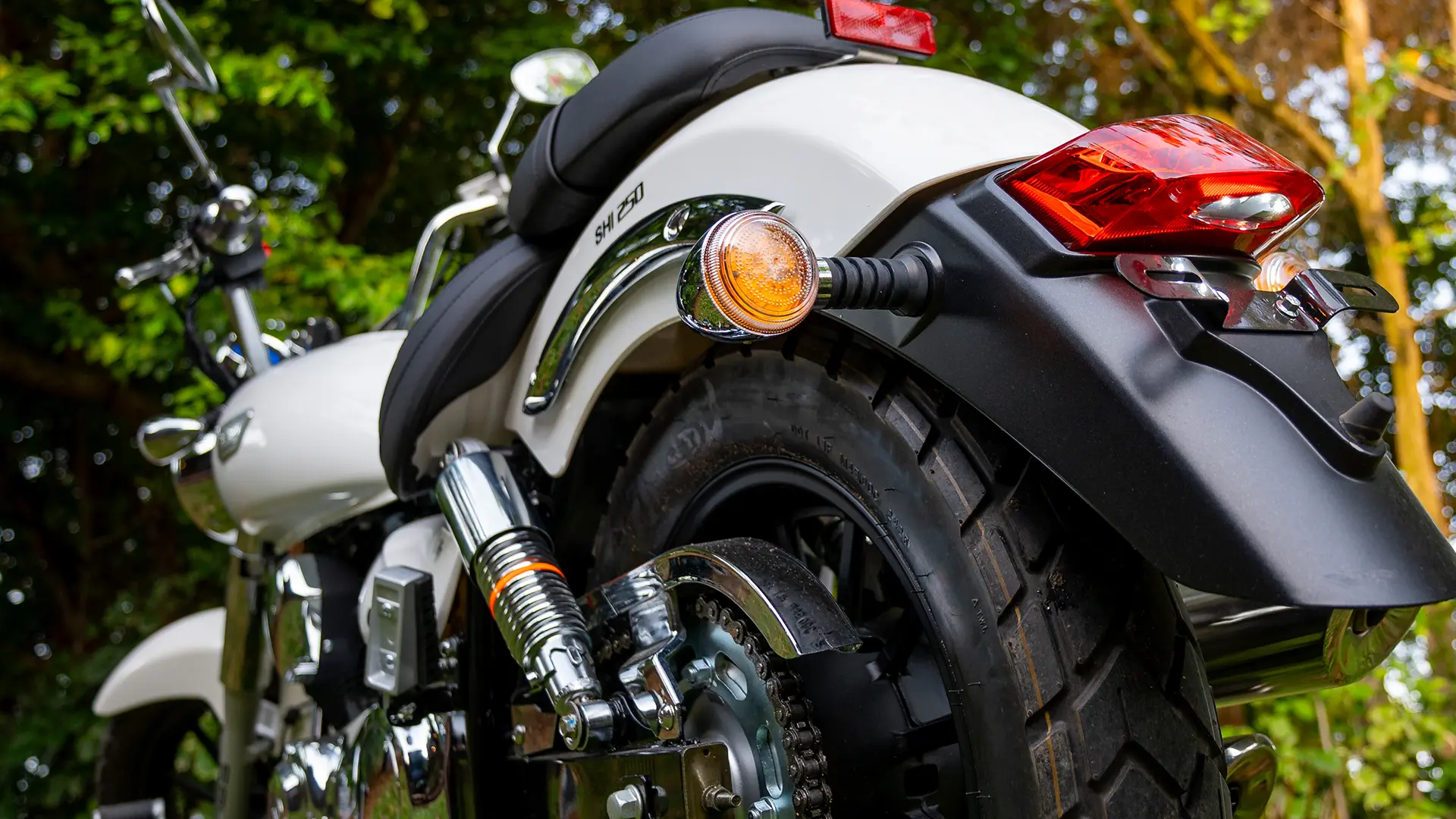 Roda traseira/ARO: 130/90 – 15”