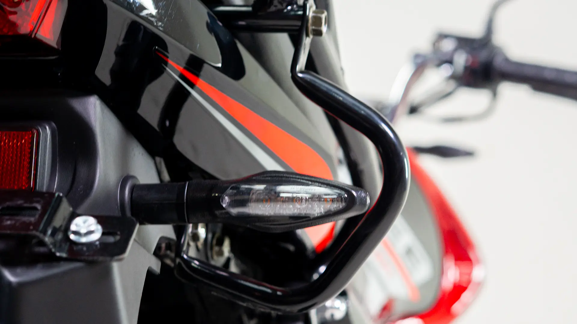 Possui Luz DRL aumentando a visibilidade e a segurança no trânsito e Farol e setas em LED.