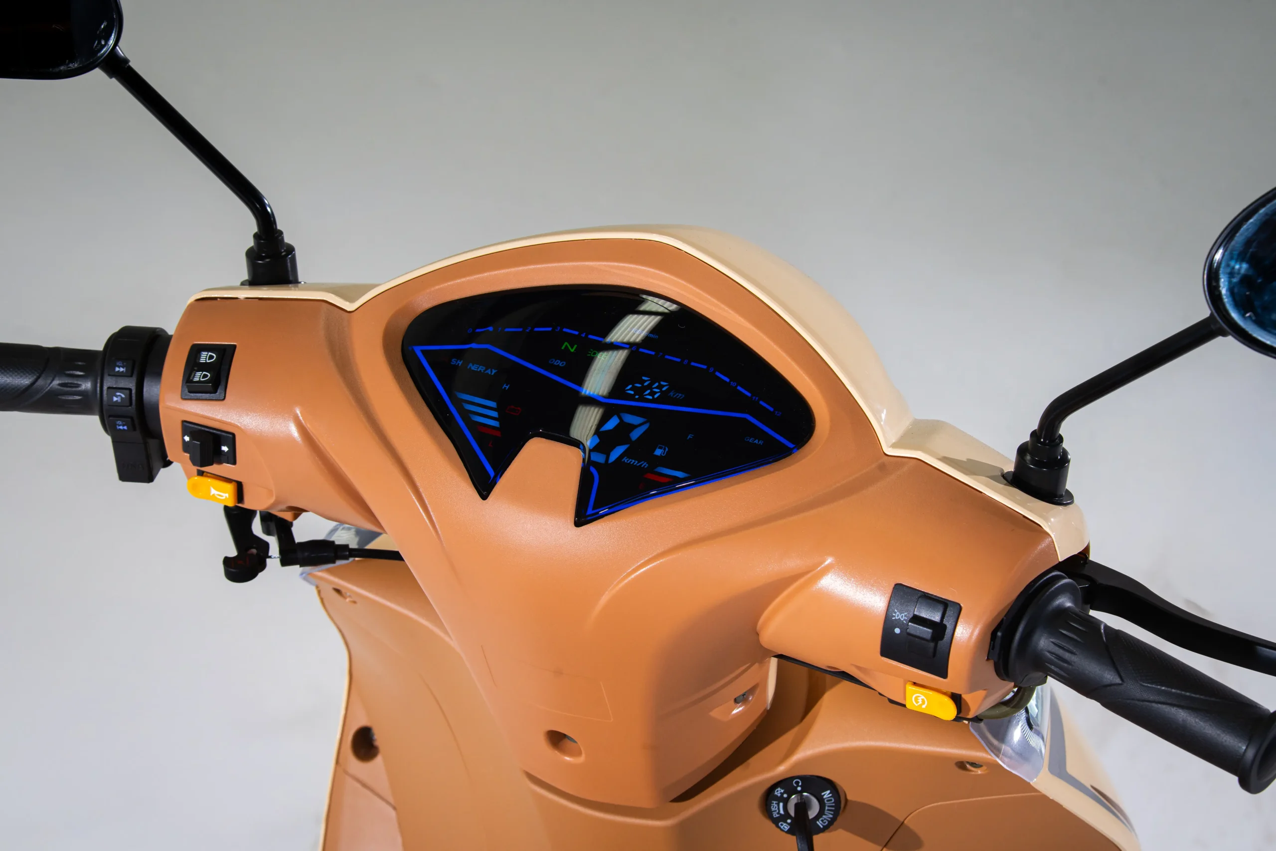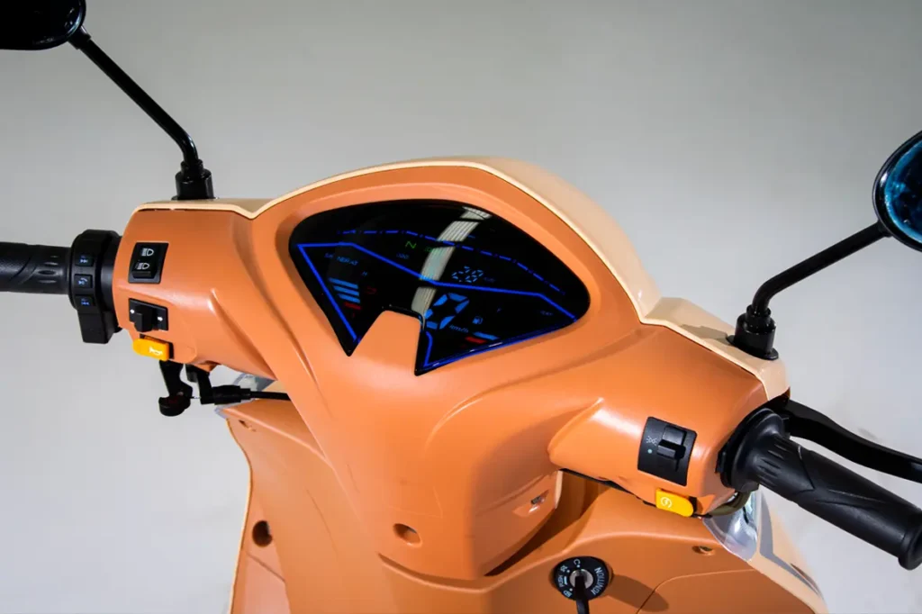O painel digital da NEW JET, foi projetado para atender as mais variadas demandas na entrada, permitindo uma visibilidade dos itens importantes de forma clara, garantindo que os dados necessários fiquem visíveis ao alcance dos olhos. Ele conta com indicadores de gasolina, marcha, farol alto, velocidade e odômetro.