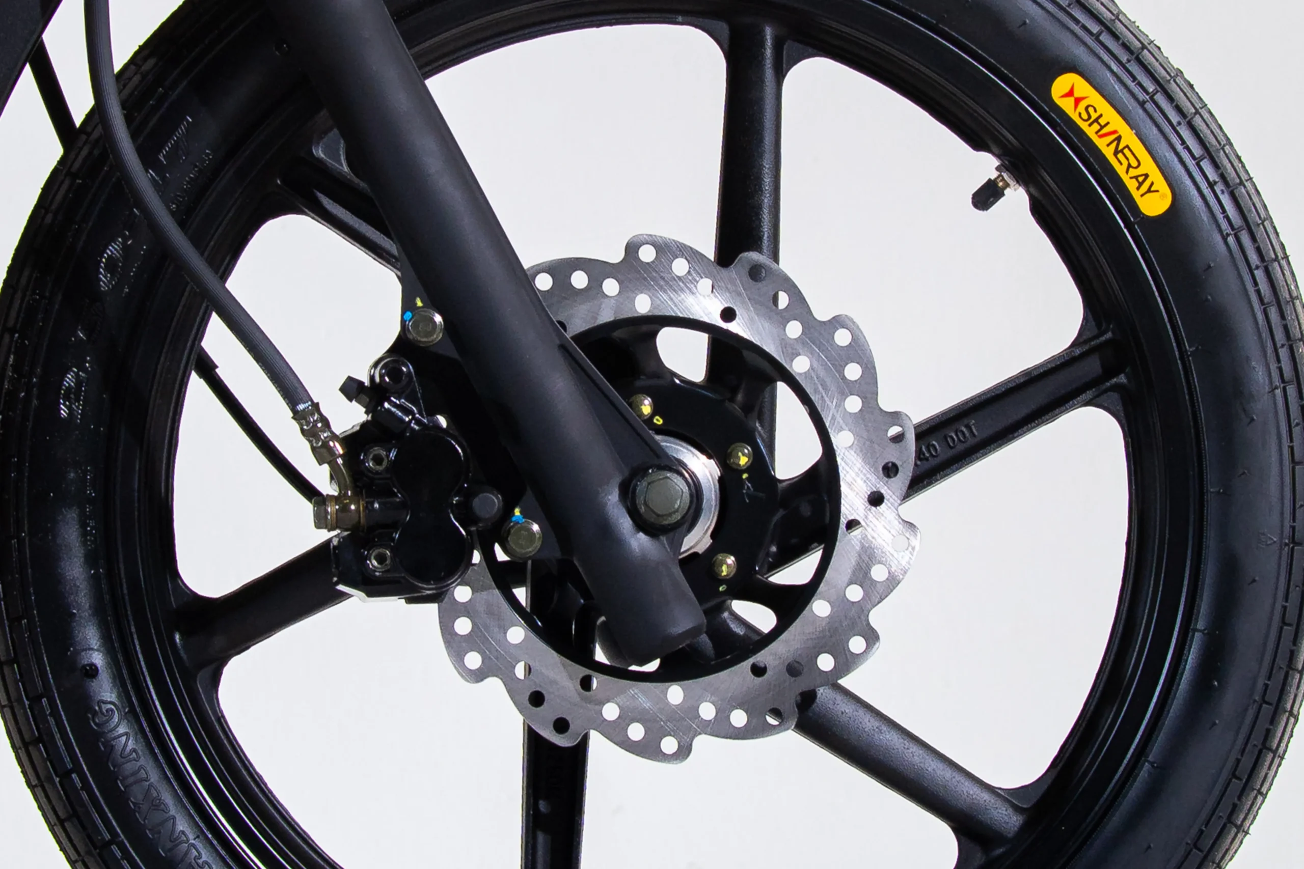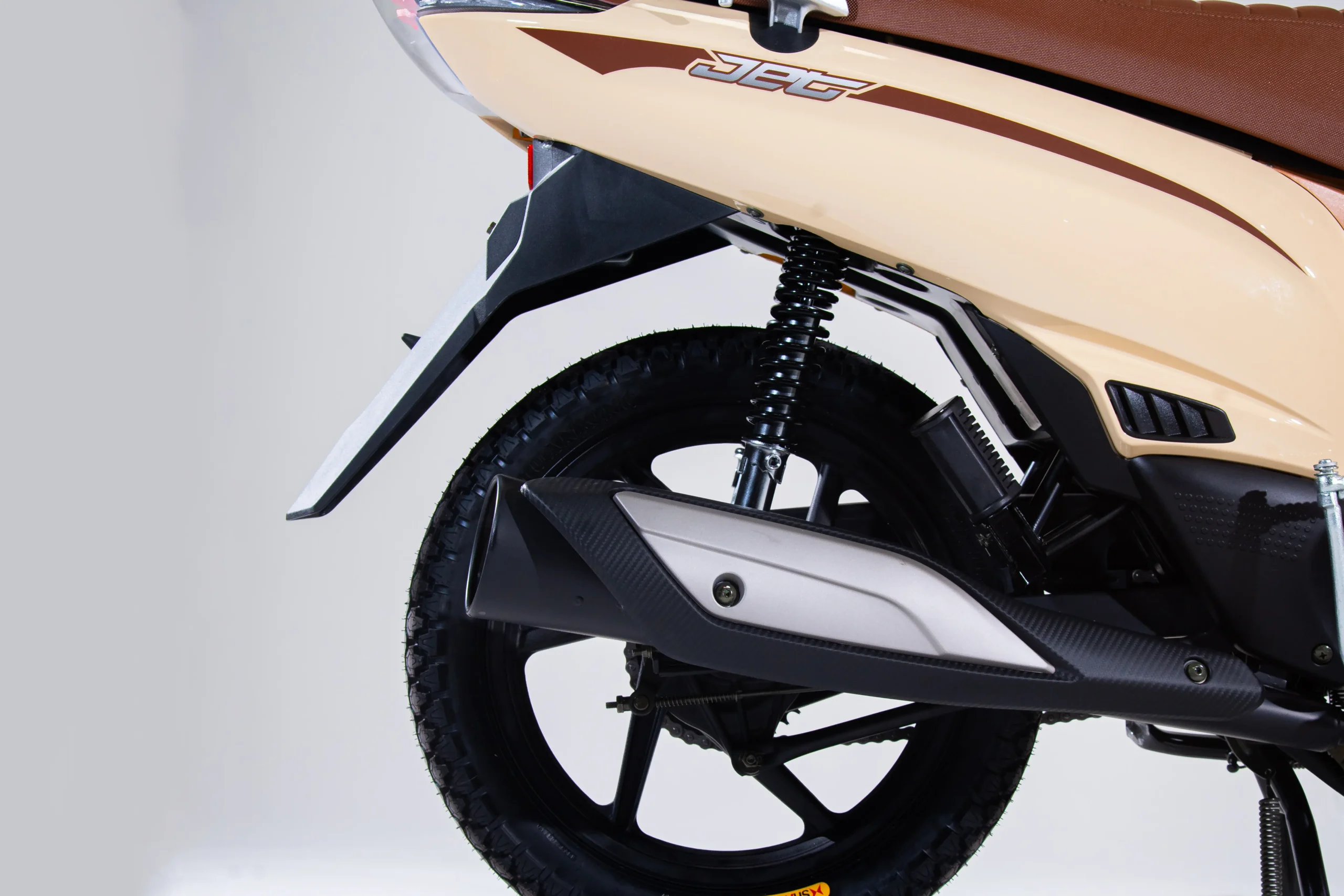 A NEW JET conta com rodas de liga leve aro 14´´ na traseira e aro 17´´ na dianteira. Além disso, conta com o freio dianteiro a disco, oferecendo uma frenagem mais eficiente e rápida.