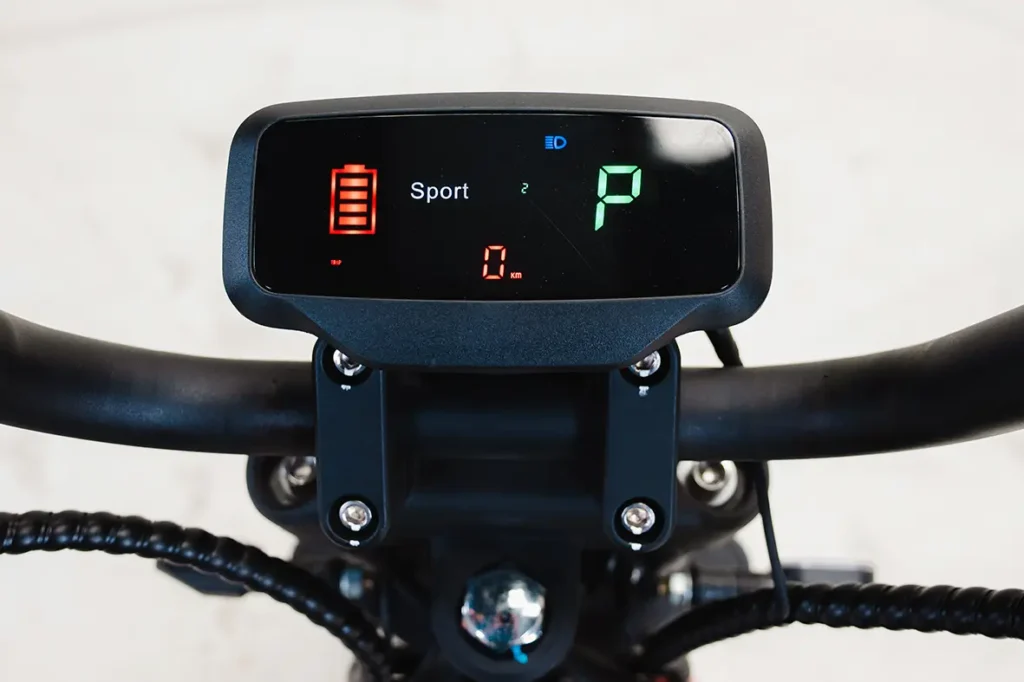 Painel 100% digital, facilitando a visualização de todos os indicadores do produto. O painel da PT4-PRO possui indicador de velocidade, modo de condução, nível de carga da bateria e odômetro.