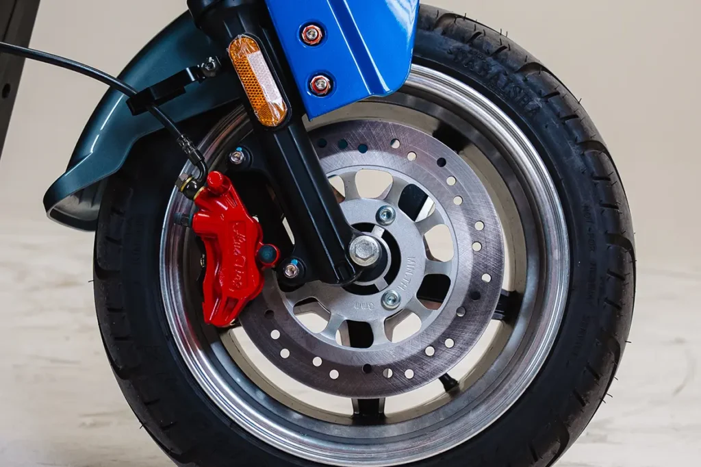A PT4-PRO possui rodas de liga leve, oferecendo mais resistência e leveza, a roda dianteira e traseira conta com aro 10. Além disso, conta com os freios à disco, oferecendo uma frenagem mais eficiente e rápida.