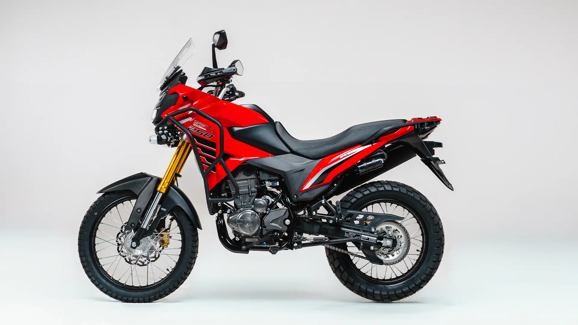 Conheça a SBM 250t: Versátil e pronta para diferentes trajetos, a SBM 250T combina desempenho e estilo com motor de 250cc e câmbio de seis marchas. Um modelo que entrega força na medida certa e uma condução equilibrada, tanto na cidade quanto em percursos mais exigentes.