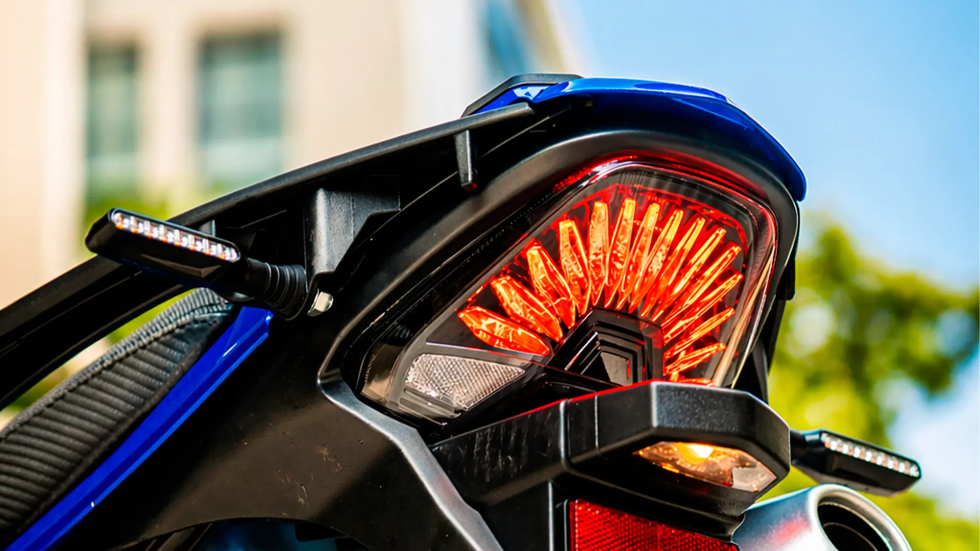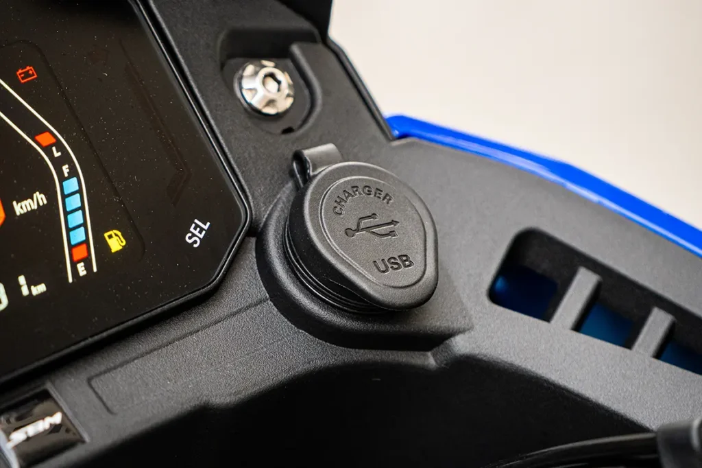 O painel em LED oferece uma leitura clara e objetiva das informações essenciais da moto. Com visual moderno e fácil visualização, ele contribui para uma pilotagem mais prática e segura em qualquer situação.