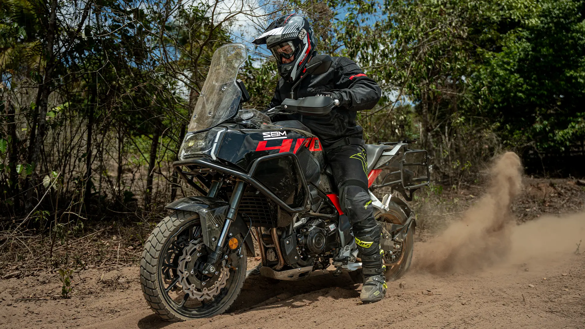 Conheça a SBM 400ss: Um modelo trail para quem busca liberdade além do asfalto, sem abrir mão de tecnologia e controle. A SBM 400ss eleva sua experiência na estrada com um conjunto completo de itens de série, como ABS de duplo canal, painel TFT e motor bicilindríco.