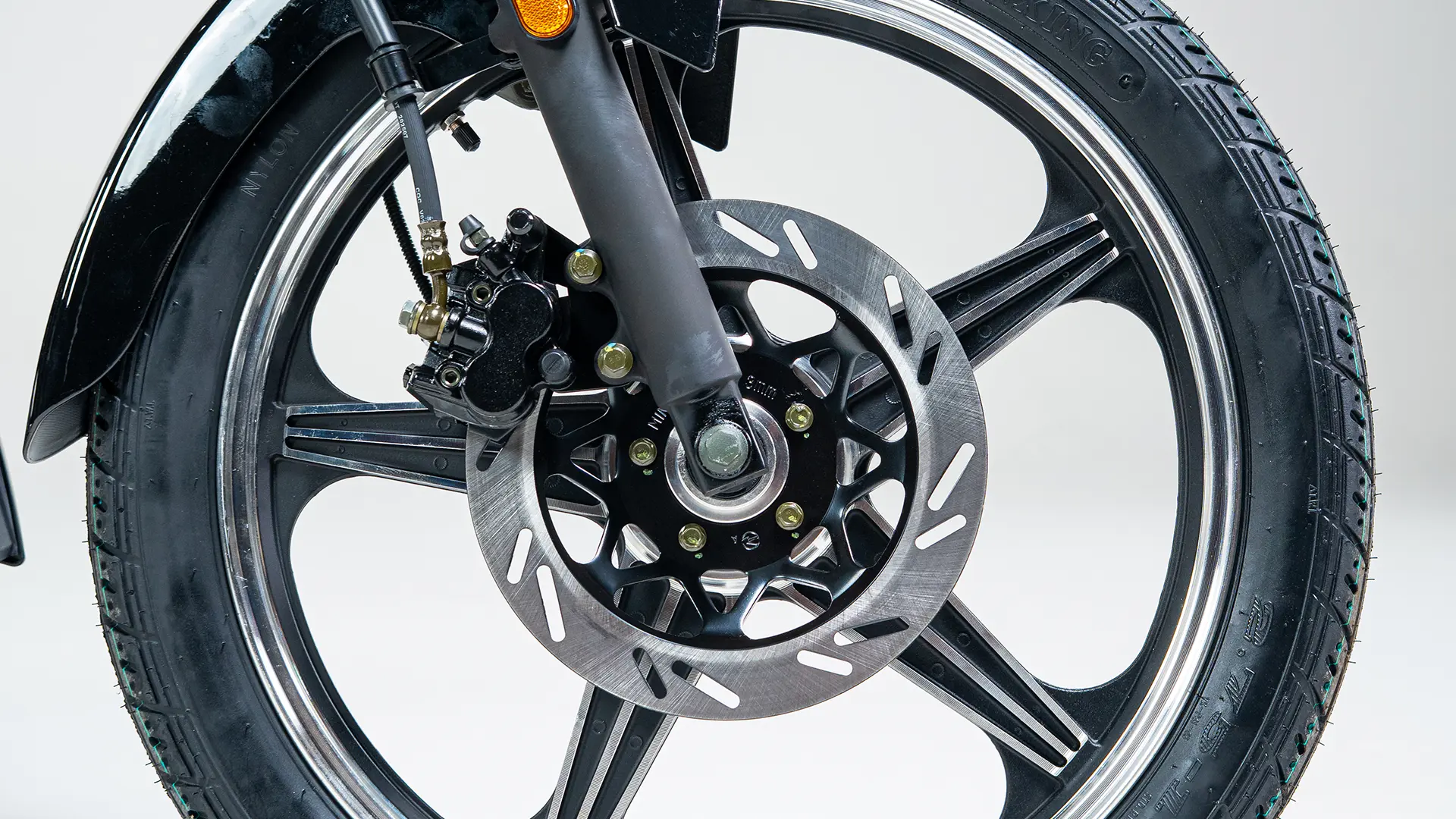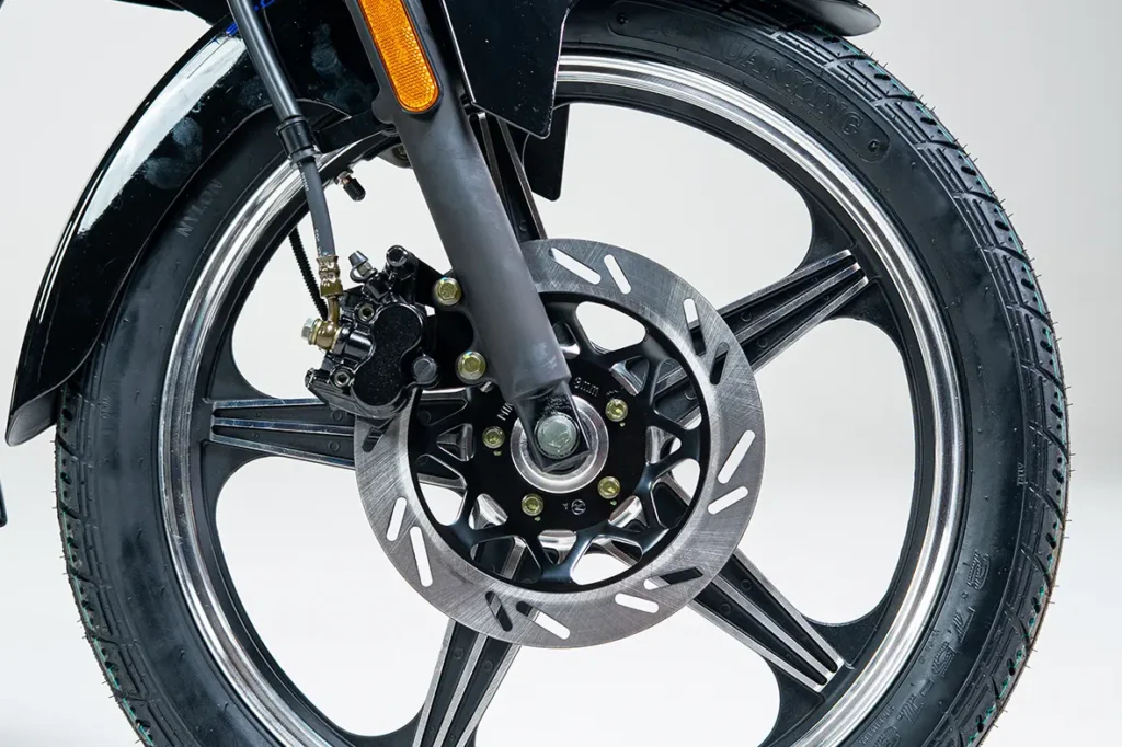 Equipada com rodas aro 18, a SHI 170 garante mais estabilidade e segurança na pilotagem. O freio a disco na dianteira proporciona frenagens mais eficientes, trazendo mais controle para o seu dia a dia no trânsito.