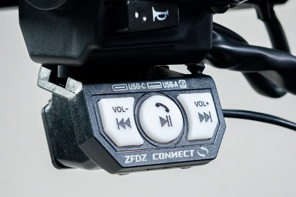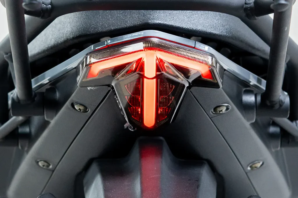 Porta USB e USB-C, Cavalete central e descanso lateral.